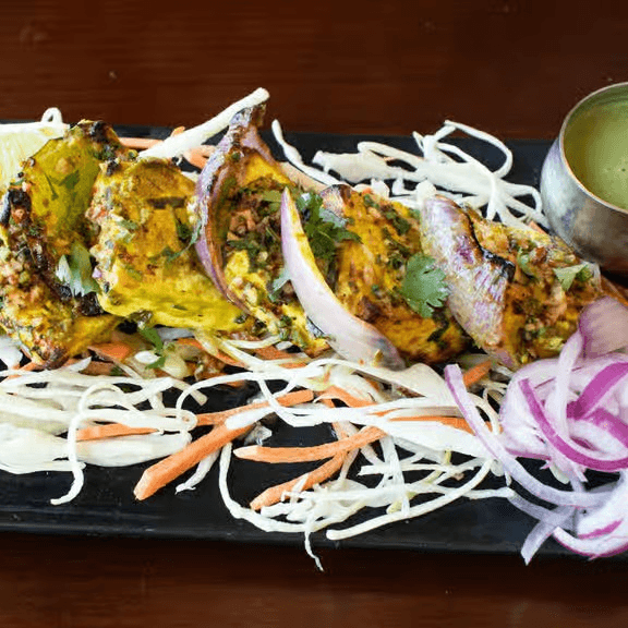 Cauliflower marinated in spiced yogurt with ginger, garlic, tandoori masala, & grilled to perfection.