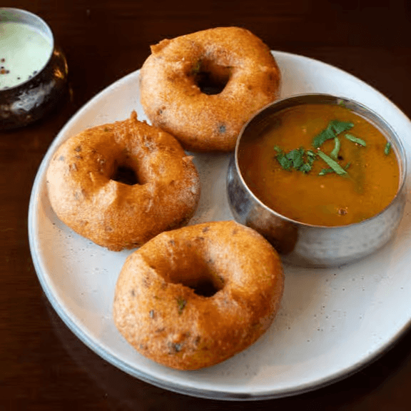 3 pcs. Crispy, golden lentil fritters served with chutney and sambar