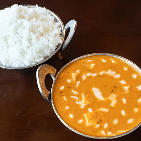 Grilled paneer cubes simmered in a rich, creamy tomato-based gravy with aromatic spices for a bold and comforting flavor.Served with rice.