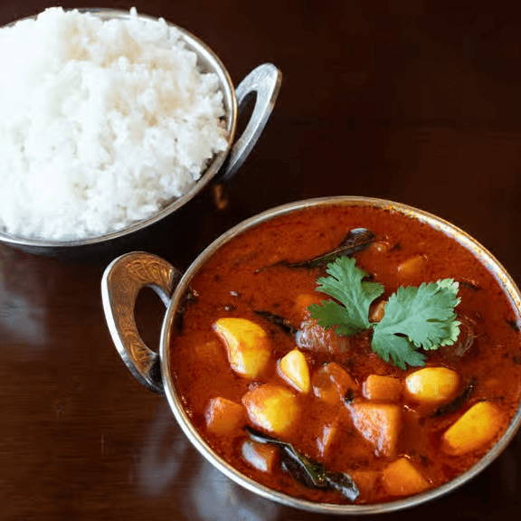 Curry from the Chettinad region, made mixed vegetables cooked in a rich blend of aromatic spices, coconut, and tamarind.