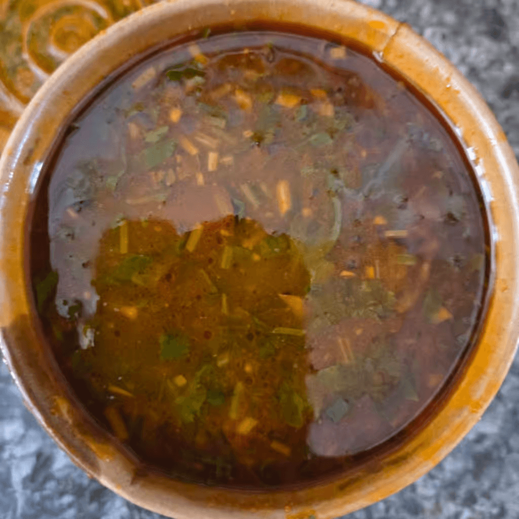 A flavorful south indian soup made with toor dal, tamarind, spices, and coconut